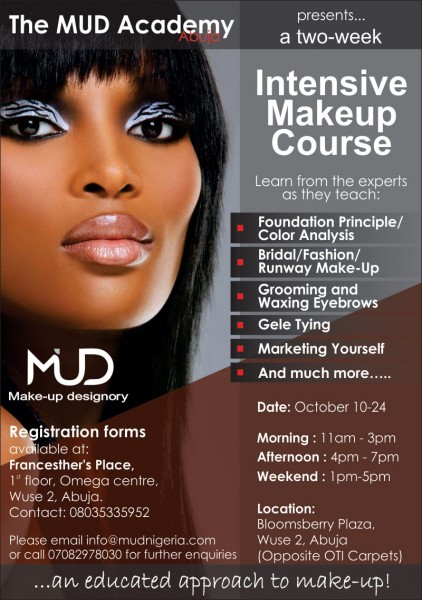 In its drive to impart excellence into practicing and aspiring make-up artists, MUD Academy has arranged for a two-week intensive training for residents of Abuja and environs. The course is tailored for both beginners as well as seasoned make-up artists.
