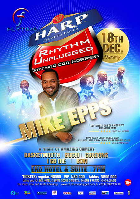 United States of America’s foremost comedian, Mike Epps, will headline the December 18 edition of this year’s Harp Rhythm Unplugged concert slated for the indoor hall of Eko Hotels and Towers, Lagos. He'll be supported by some top Nigerian comedians like I Go Dye, Gordons, Basketmouth, Bovi and Buchi.