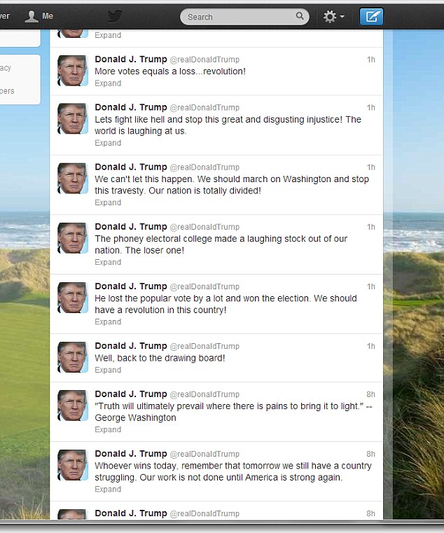 He called Obama's victory a 'great and disgusting injustice', calling on Americans to march on Washington DC to press home their displeasure with the outcome of the election.