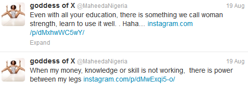 Singer Maheeda once told the media that she had dropped her prostitution lifestyle and now a born again, but her recent revelations in the social media is an indication that she's back to living dirty. In fact, it seems she is now sleeping with different men indiscriminately.