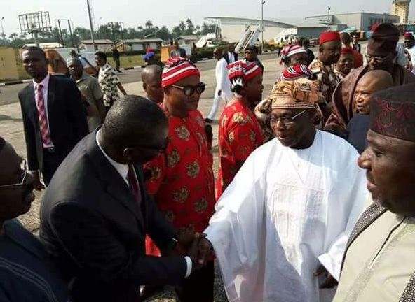 Obasanjo Lands In Imo, Received By Okorocha (Photos)