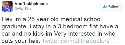 "Very interested in who cuts your hair". Social media children sabi look for trouble. *Smiles*
