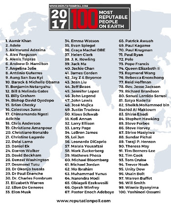A list of individuals across the globe that have amassed high reputation through their works and achievements, and some respected men of God from Nigeria made the list.