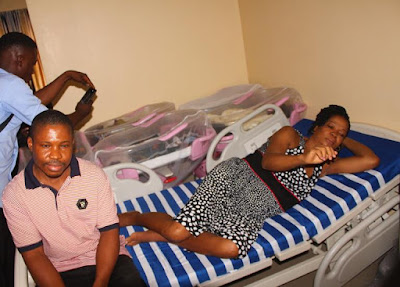 The Pediatrician In-Charge at the hospital, who supervised the delivery processes, Dr. Kenneth Okeke, said that the babies are doing well after spending two weeks in the neo-natal intensive care unit of the hospital as a result of the pregnancy timeframe which lasted approximately thirty-seven premature weeks.