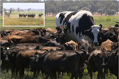 Knickers, a seven-year-old Holstein Friesian, is more than twice the size of the rest of the cows in Myalup, Western Australia.