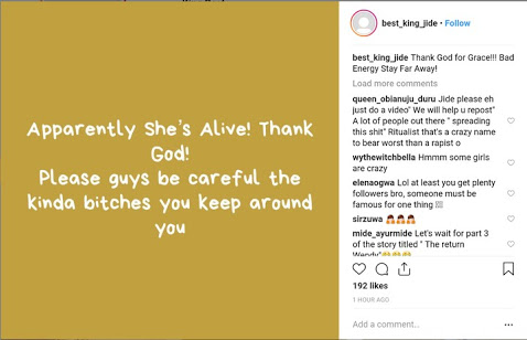 According to reports on social media, a model and video vixen, Wendy opened up to her friend that she had a dream that her boyfriend, Best Jide, who was spending money on her had used her for rituals, leading to her bleeding when she woke up.